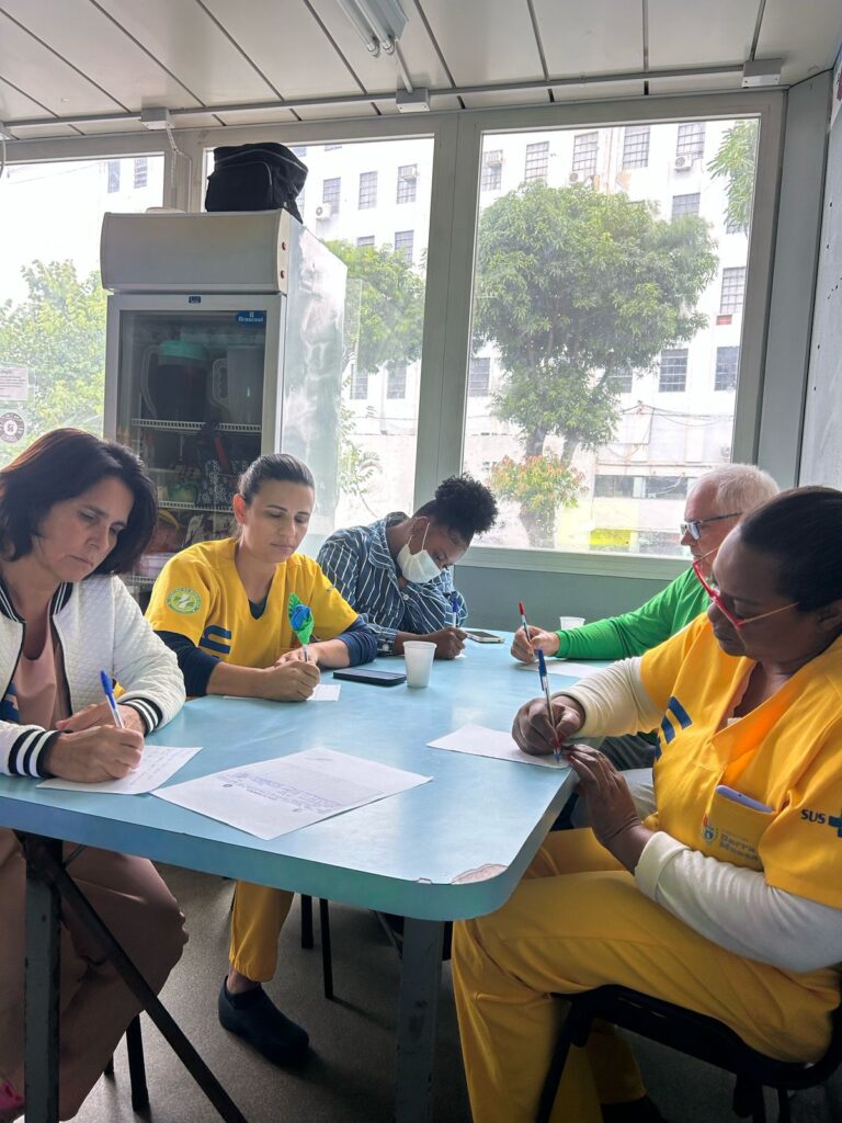 Participaram do treinamento enfermeiros, técnicos de enfermagem, profissionais administrativos e assistentes sociais, totalizando uma equipe preparada para atuar desde a recepção até o atendimento clínico e o encaminhamento adequado dos pacientes.